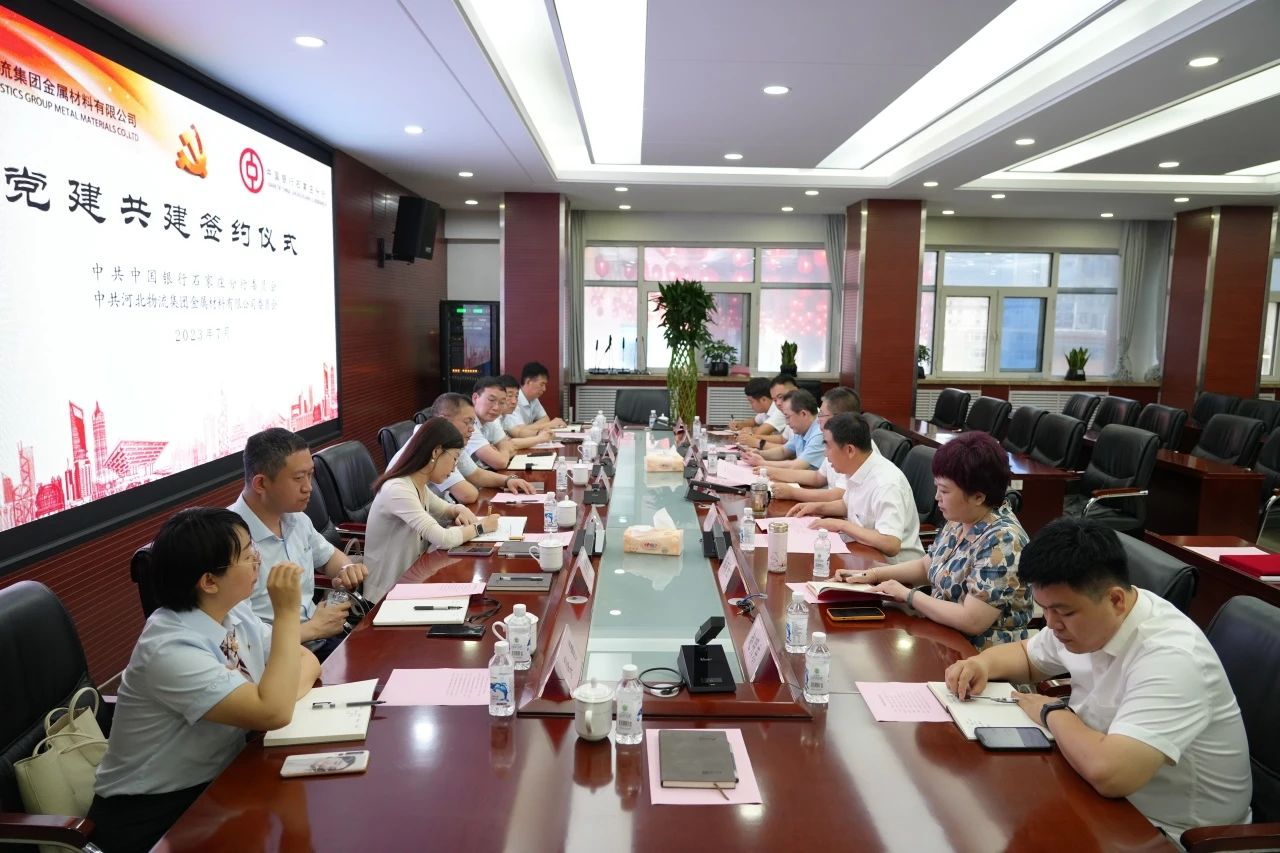 2023年7月21日,中共中國(guó)銀行石家莊分行委員會(huì)與中共河北物流集團(tuán)金屬材料有限公司委員會(huì)舉行黨建共建簽約儀式,中國(guó)銀行石家莊分行黨委副書記、副行長(zhǎng)韓蔚一行與金屬公司黨委書記、董事長(zhǎng)張有貴等公司領(lǐng)導(dǎo)進(jìn)行交流座談。